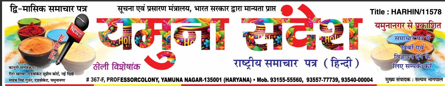 यमुना संदेश न्यूज़ (Yamuna Sandesh News) एक प्रमुख डिजिटल न्यूज़ प्लेटफॉर्म है, जो मुख्य रूप से हरियाणा (विशेषकर यमुनानगर क्षेत्र) और दिल्ली की खबरों पर केंद्रित है। यह संस्थान भारत सरकार के सूचना एवं प्रसारण मंत्रालय के डिजिटल मीडिया एथिक्स कोड के अंतर्गत पंजीकृत है।